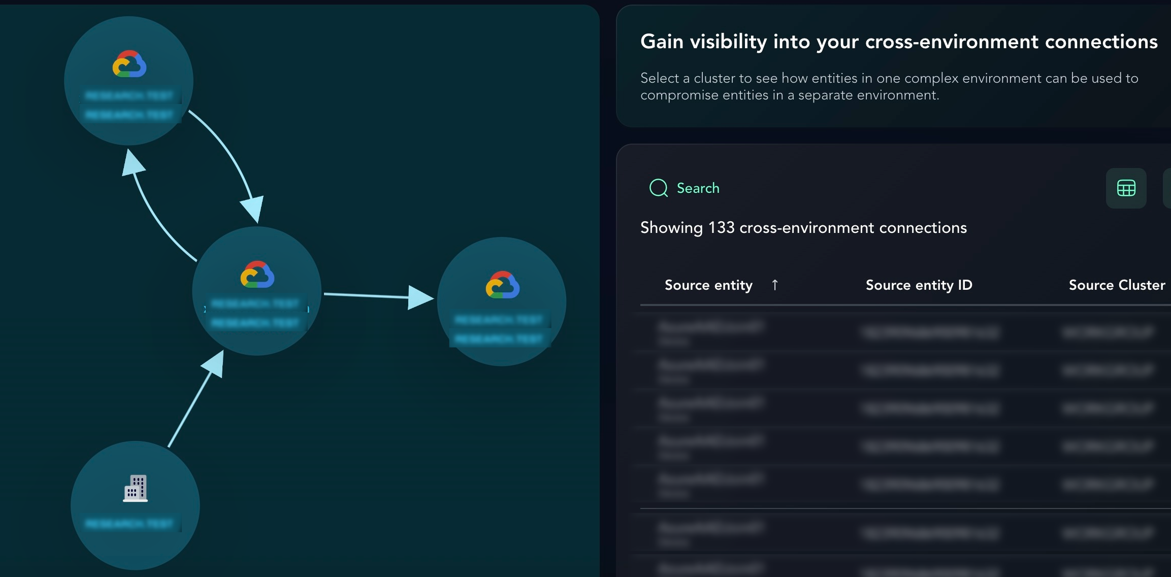 Security teams often assume an environment is isolated, but attacker movement proves otherwise. The Cross Graph removes this speculation by mapping cross-environment connections between multi-cloud and Active Directory environments. As part of the XM Cyber CEM Reports module, Cross Graph scans and identifies your organization’s most at-risk complex environments. Based on these findings, the report maps out cross-environment connections between Source entities and Target entities in separate environments. This perspective enables you to remediate against each Exposure, putting those entities at risk, thereby continuously improving your security posture.